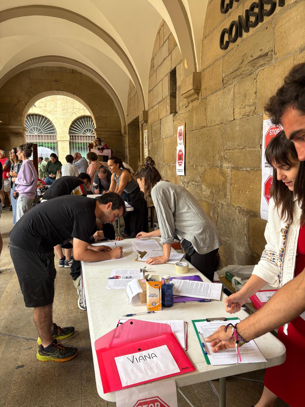 Una Plataforma vecinal constituida recientemente en Viana contraria a la instalación en este municipio de un macroproyecto de una planta de biogas ha recabado en tan solo dos dÃas más de mil firmas de apoyo y está saliendo a la calle con el propósito de recabar muchas más. Hoy domingo entre las 12 y las 14 horas tendrán una mesa informativa instalada en la plaza de los Fueros de Viana.