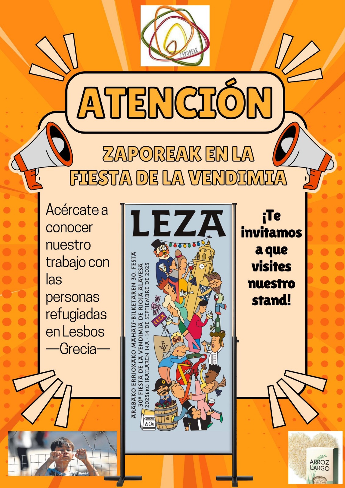 Mañana domingo entre los diferentes stands que se van a encontrar todos los vecinos de Rioja Alavesa que acudan a la cita anual con la Fiesta de la Vendimia de Rioja Alavesa, habrá uno muy especial perteneciente a la Onegé Zaporeak, que presentará su campaña solidaria «Arroz Miliketa»Â