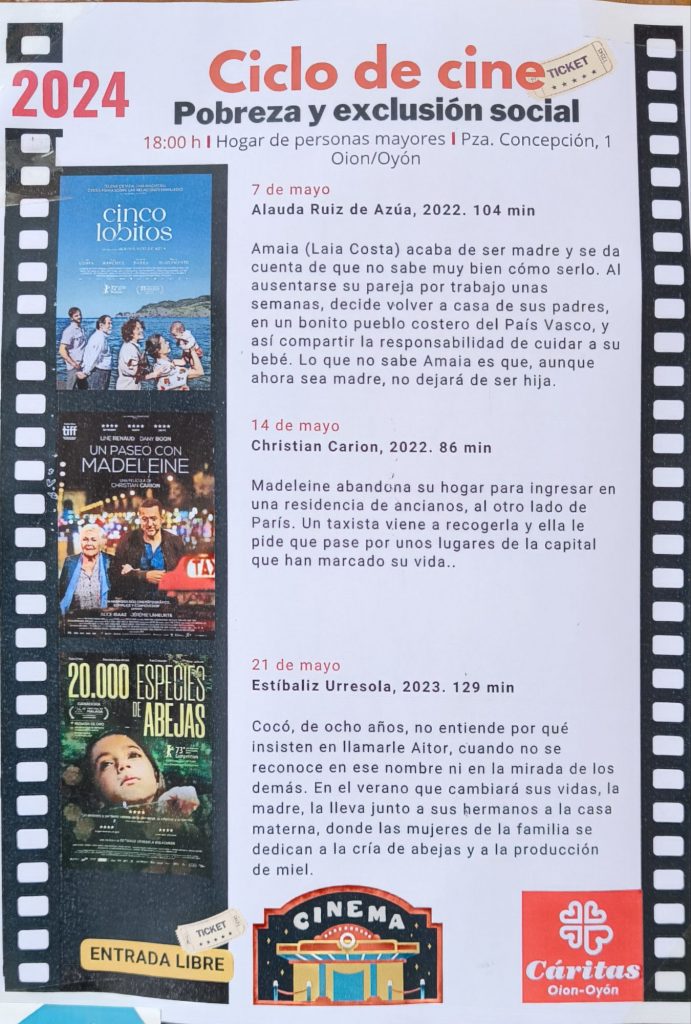 📌Caritas en Oion organiza un ciclo de cine sobre ‘Pobreza y exclusión social’