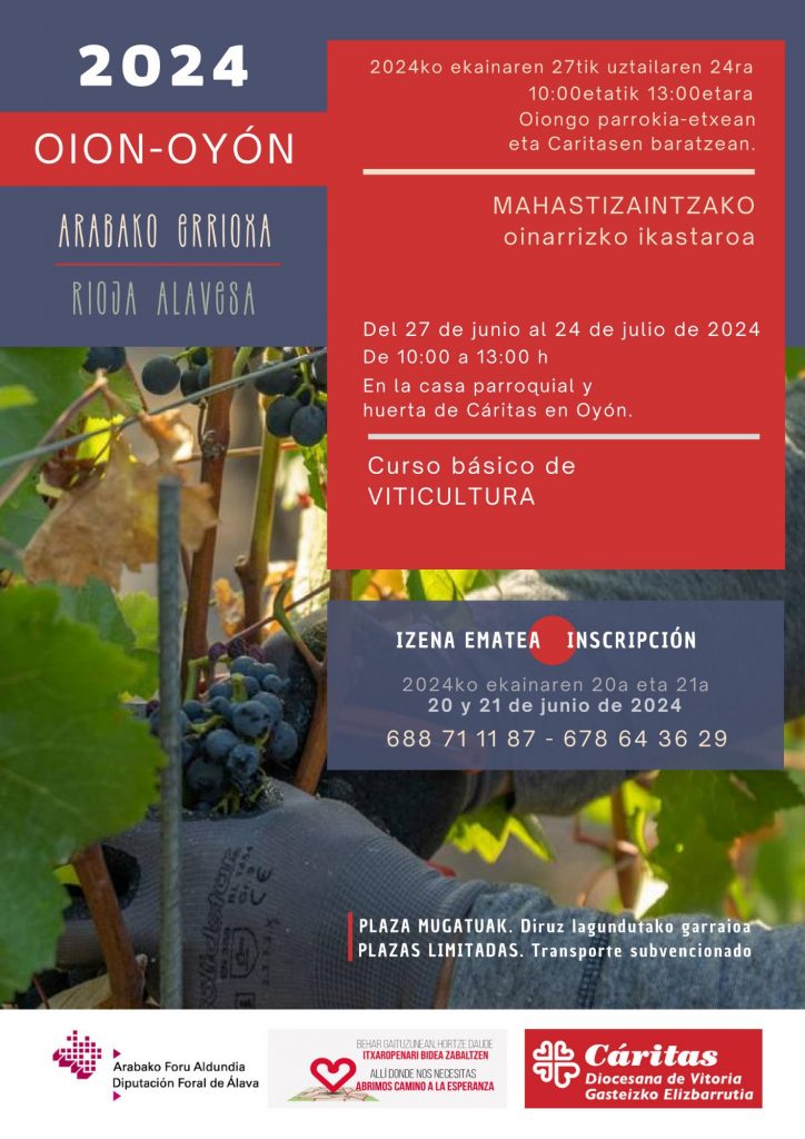 El curso incluirá un total de doce horas dedicadas a competencias transversales, abarcando habilidades sociales para la vida personal y habilidades laborales. En el apartado especÃfico del curso básico de viticultura, se destinarán cuarenta y ocho horas a sesiones teórico-prácticas, que cubrirán temas como la introducción a la viticultura, la organografÃa de la vid, labores de la viña, asà como las enfermedades de la vid y sus tratamientos.