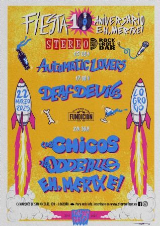 R: Sí, lo celebramos en Logroño, la ciudad en la que estamos afincados. Hemos organizado un festival itinerante en las salas Stereo y Fundición, con conciertos de Automatic Lovers (Madrid), Deaf Devils (Valencia), The Oddballs (Málaga), Los Chicos (Madrid y Cantabria) y nosotros mismos. Las entradas están agotadas desde hace tiempo, así que sabemos que va a ser uno de esos días para recordar.
