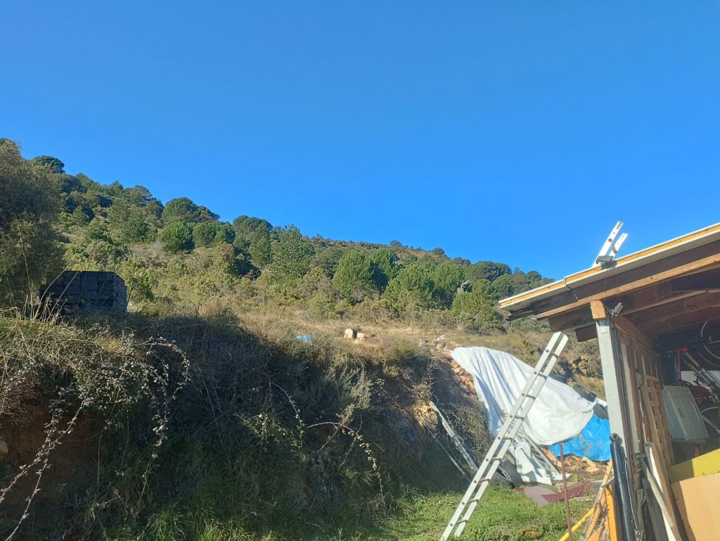Exterior de la casa de Piru, donde justo enfrente iría instalado uno de los aerogeneradores