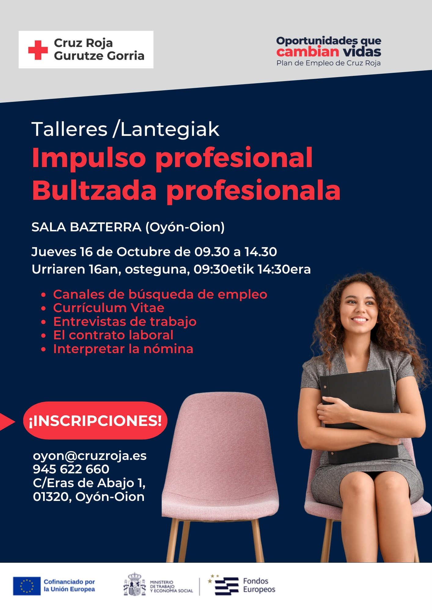 Cruz Roja Oion ha organizado un nuevo taller formativo titulado “Impulso Profesional”, que se celebrará el jueves 16 de octubre, de 9:30 a 14:30 horas, en la Sala Bazterra.