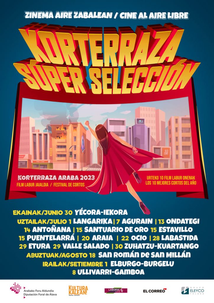 En Korterraza Araba, el público está disfrutando con una interesante y entretenida selección de cortometrajes, con mucha comedia, un toque de drama y suspense y, por supuesto, con animación para el público infantil. Las localidades participantes pueden elegir entre las cuatro secciones que el certamen prepara para el territorio: Súper Selección, Komedia, Mix y Txiki.