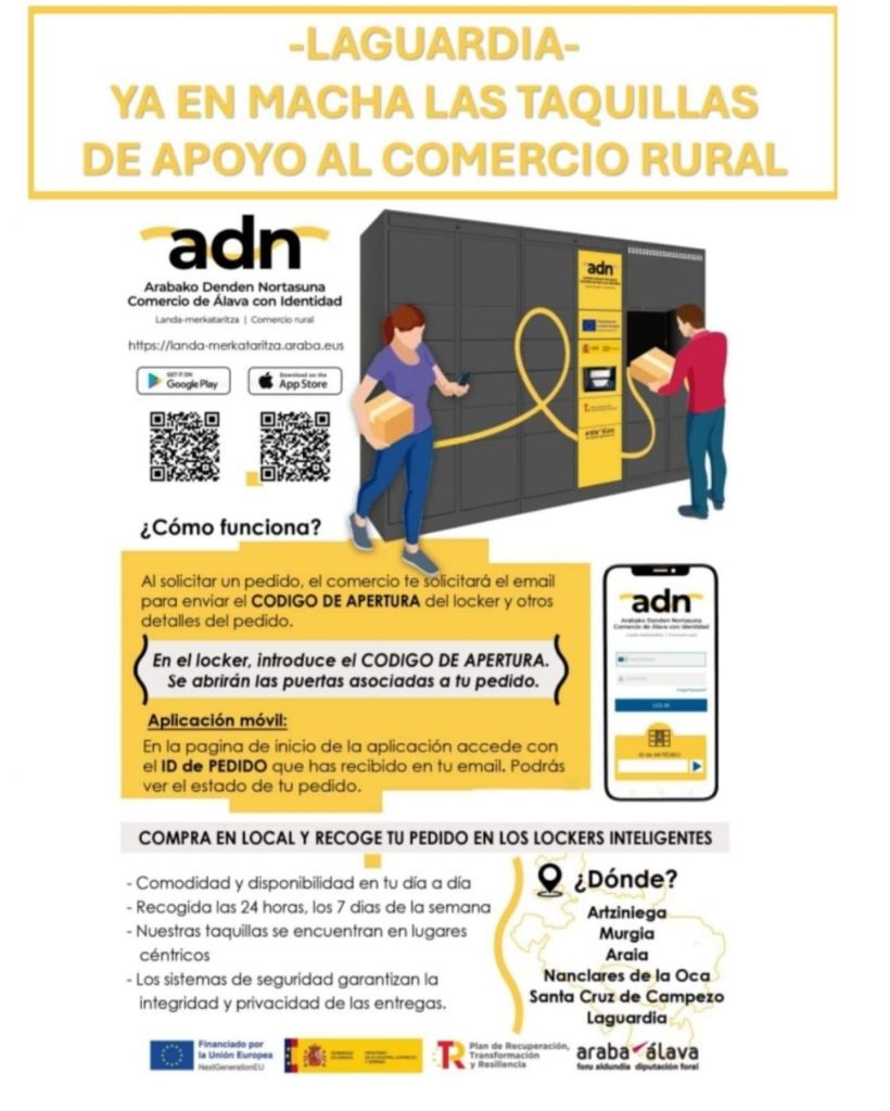 En Laguardia estarán ubicadas estas taquillas en la Plaza Nueva y corresponde a una iniciativa del Departamento de Empleo, Comercio y Turismo de la Diputación Foral de Álava que ha activado taquillas inteligentes en Araia, Artziniega, Laguardia, Murgia, Nanclares de la Oca y Santa Cruz de Campezo para ofrecer al comercio rural un nuevo canal de distribución y comercialización.