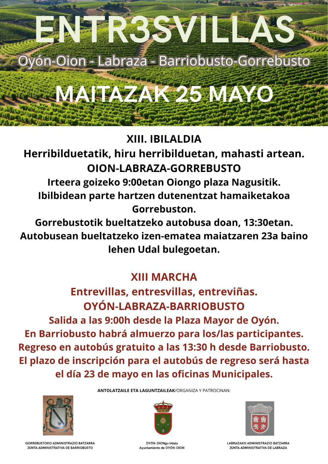 La marcha de senderismo «Entreviñas y Entrevillas» celebra en 2025 su decimotercer aniversario. Este recorrido a pie de 13 kilómetros une Oion, Labraza y Barriobusto, permitiendo a los participantes disfrutar del paisaje rural y los viñedos de la zona, tal como evocan los nombres de la marcha: «entrevillas» (entre pueblos) y «entreviñas» (entre viñas).