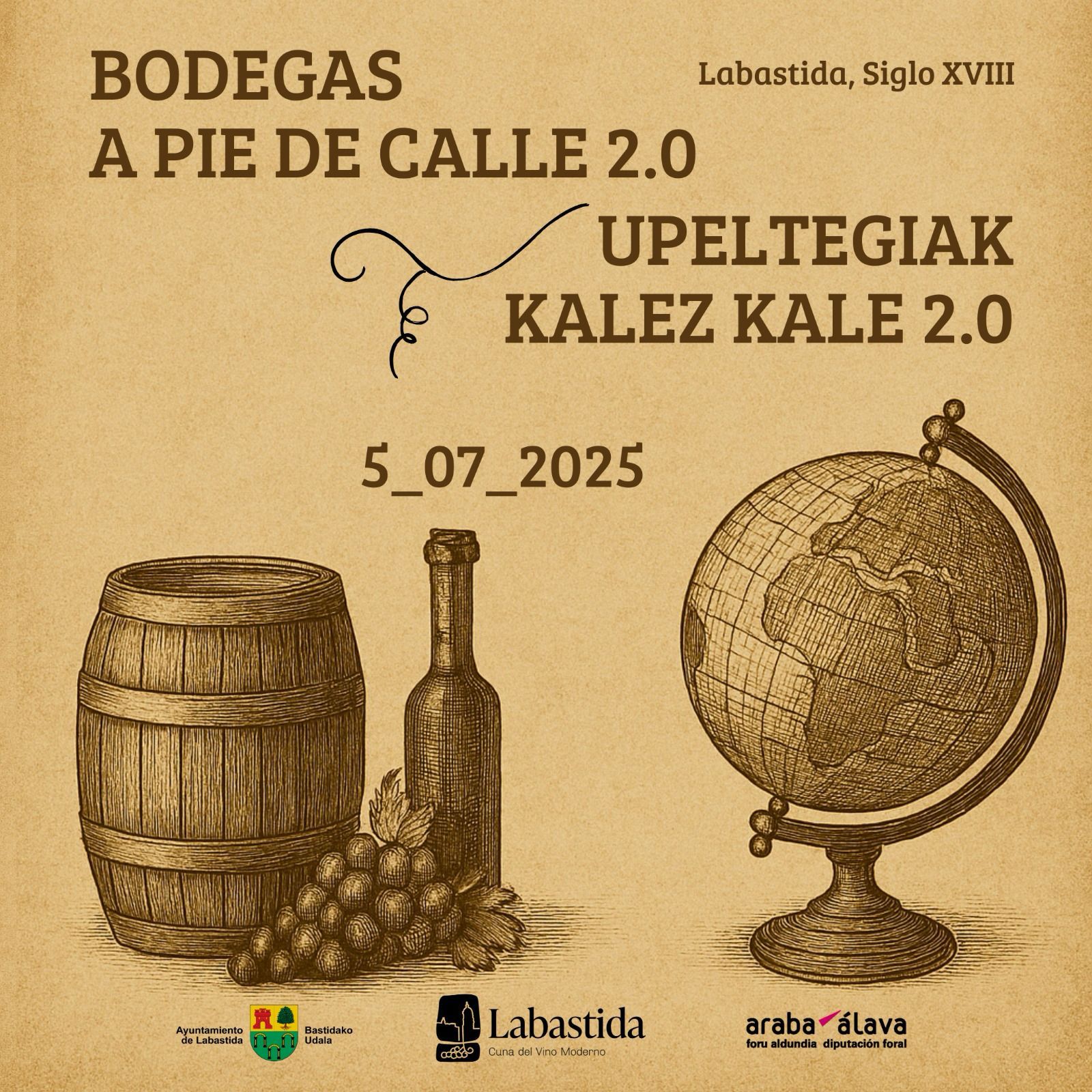 El Ayuntamiento de Labastida ha presentado la nueva edición de su emblemático evento enogastronómico y cultural, “Bodegas a Pie de Calle 2.0 – Upeltegiak Kalez Kale”, que se celebrará del 3 al 5 de julio de 2025 en el histórico Barrio del Otero, epicentro vitivinícola del siglo XVIII. Esta iniciativa consolida a Labastida como un referente en la promoción de vinos de calidad, revitalizando su patrimonio cultural y urbano con una experiencia inmersiva que combina sabores, historia y tradición.