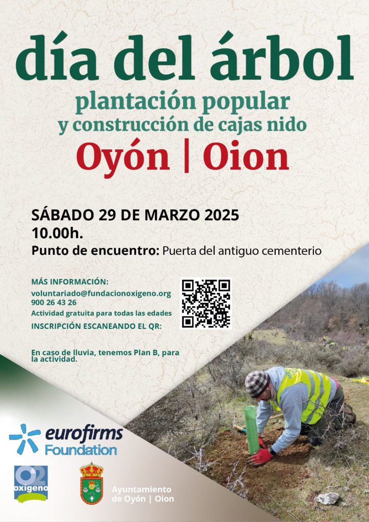 A esta causa se ha sumado la Fundación Oxígeno , que junto al Ayuntamiento de Oion celebrará el Día del Árbol este sábado 29 de marzo. Juan José Asensio, técnico de la Fundación Oxígeno, ñseñala que esperan una alta participación, especialmente de familias con niños. Los interesados solo deben inscribirse antes del viernes 28 de marzo, ya que la organización proporcionará todos los materiales: guantes, azadas, chalecos y herramientas.