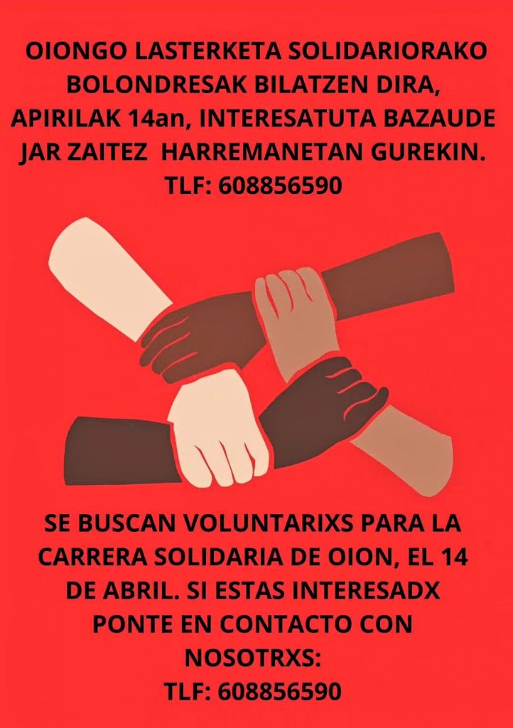 Desde la organización de este evento se ha solicitado a través de las redes sociales colaboración en forma de voluntariado para esa jornada para lo cual se facilita un número de teléfono de contacto.