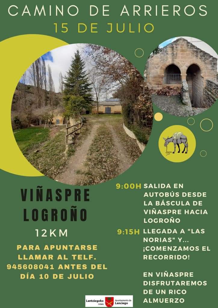El sábado 15 de julio el ayuntamiento de Lanciego, pretende que quienes se animen puedan revivir un primer tramo de un camino que ya el pasado mes de abril en una marcha similar pero en sentido contrario se llevó a cabo desde la localidad de Villafría al otro lado de la Sierra de Cantabria hasta Viñaspre