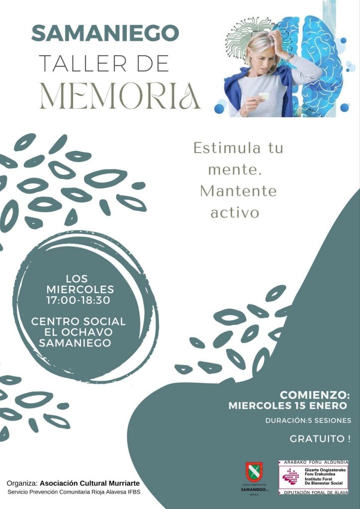Por otro lado, los vecinos de Samaniego tienen también buenas noticias. Un nuevo Taller de Memoria está a punto de comenzar, gracias a la colaboración con la Asociación Cultural Murriarte y el Ayuntamiento que a buen seguro atraerá a muchos interesados a ejercitar su mente y fortalecer lazos entre los propios vecinos.
