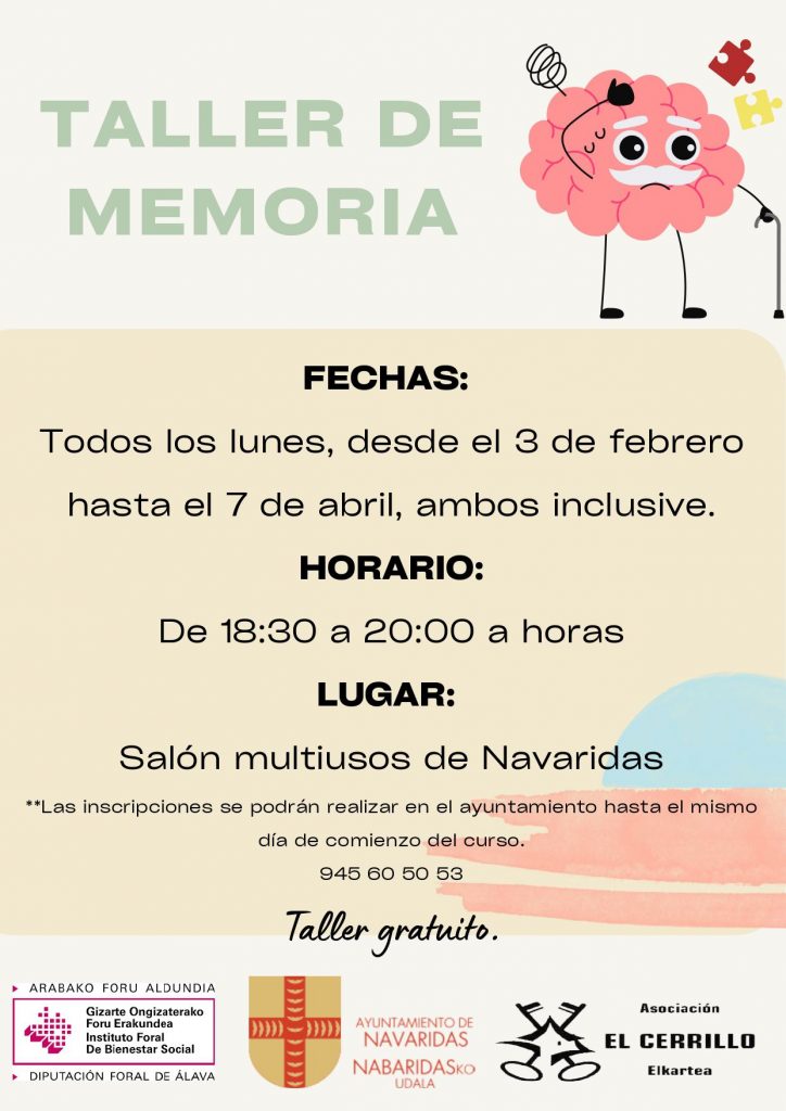 En Navaridas, el próximo mes de febrero dará inicio otro Taller de Memoria, esta vez en colaboración con la Asociación Cultural El Cerrillo y el Ayuntamiento. Los mayores de esta localidad tendrán la oportunidad de entrenar su memoria y, al mismo tiempo, conocer a otras personas de la comunidad.