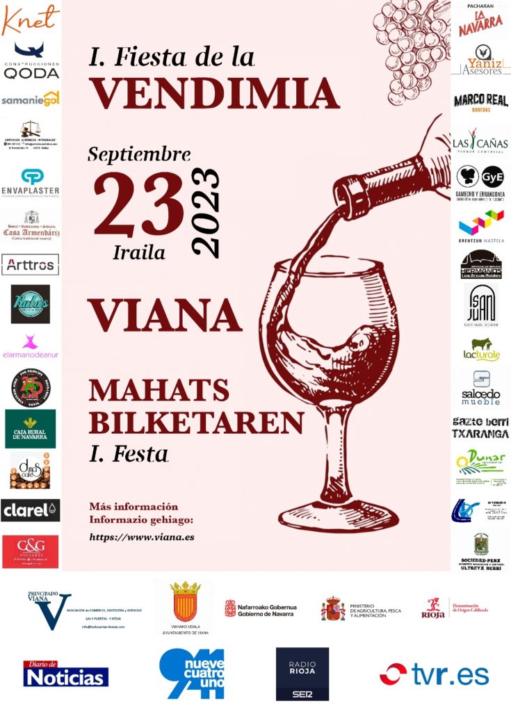 El programa de actividades previsto para la mañana del sábado 23 de septiembre en Viana incluye el tradicional pisado de la uva y la elaboración del primer mosto en la Plaza de los Fueros, asà como una degustación de vinos locales y de bodegas cercanas.